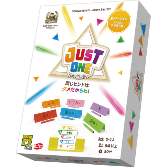※2020年に発売された『ジャスト・ワン』の新バージョンです。ルールはそのままにお題の単語550個を一新!また、フェルトペンが木炭のような柔らかい鉛筆に変わり、イーゼルがカラフルになりました!